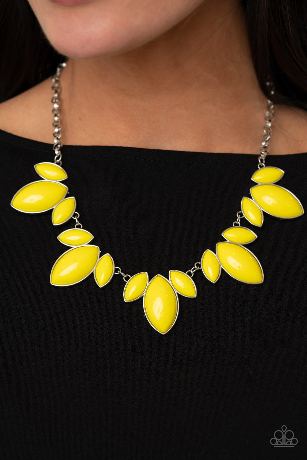 Trios of Illuminating marquise shaped beads connect into leafy frames below the collar, creating a vivacious centerpiece. Features an adjustable clasp closure.